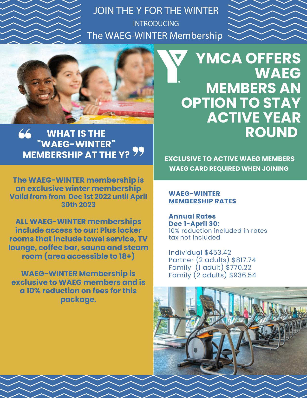 To add even more value to your Waegwoltic membership, the Club has partnered with the Halifax YMCA to offer a special opportunity to our members: winter-only memberships at a discounted price!